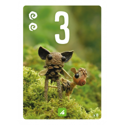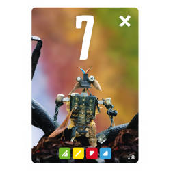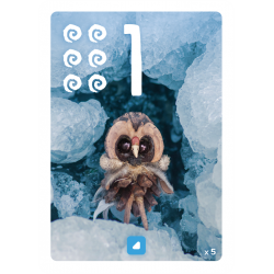 Placez-la dans l’un des 9 emplacements de votre aire de jeu selon son chiffre. Les cartes placées l’une sur l’autre sont validées et rapportent des points en fin de manche ainsi que votre plus grande zone de couleur et vos spirales.
