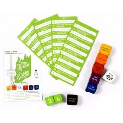 Le principe de ces jeux est identique, mais chaque boite contient 9 dés et 120 thèmes différents que vous pouvez combiner à volonté : utiliser le dé blanc du Dragon avec le Gnou, raconter un thème du Gnou avec les dés du Dragon, tenter une histoire avec 14 dés colorés et 2 dés noirs, etc.