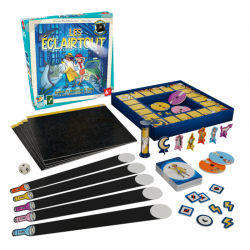 Un jeu où l'observation et la rapidité sont au cœur de l'action. Ce jeu familial, imaginé pour 2 à 5 joueurs, vous transporte dans un monde nocturne peuplé de personnages farfelus à retrouver grâce à votre lampe de poche. Les Éclairtout est un jeu accessible pour les petits comme les grands, parfait pour des moments de jeu conviviaux en famille ou entre amis.