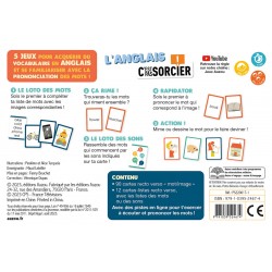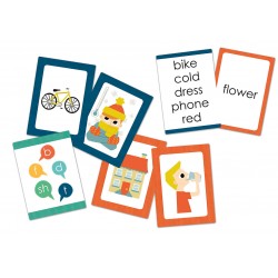 90 cartes recto verso avec d’un côté le mot en anglais et de l’autre son illustration