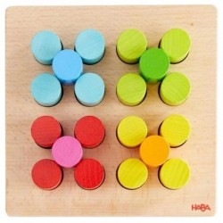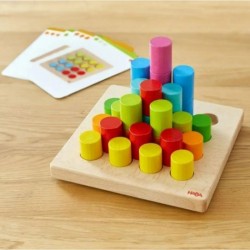 Ce jeu d’encastrement invite les enfants à créer des constructions avec des cylindres en bois, en les plaçant et en les empilant sur un plateau. Le plateau en bois comporte 16 emplacements disposés en grille (4 x 4). L’enfant peut choisir de reproduire les configurations proposées sur les cartes modèles ou de composer ses propres constructions librement.