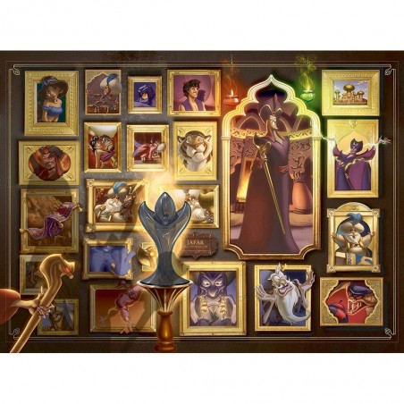 Inspirée du jeu de société Disney Villainous par Ravensburger, cette illustration (puzzle 1000 pièces) exclusive met à l'honneur l'univers maléfique du vizir Jafar, l’ennemi juré d’Aladdin et de la princesse Jasmine !