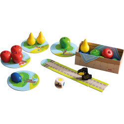 Mes premiers jeux – Mon premier verger est une adorable version pour bambins du jeu classique HABA « Le verger ».