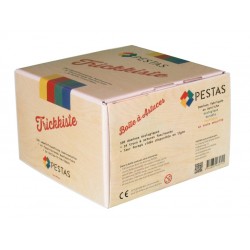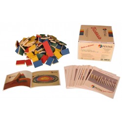 100 Pestas (dominos) dans les couleurs rouge, bleu, vert et jaune pour des heures de créativité.