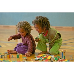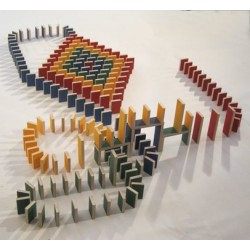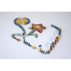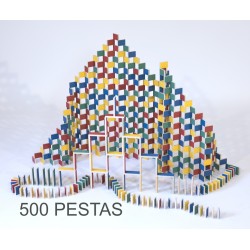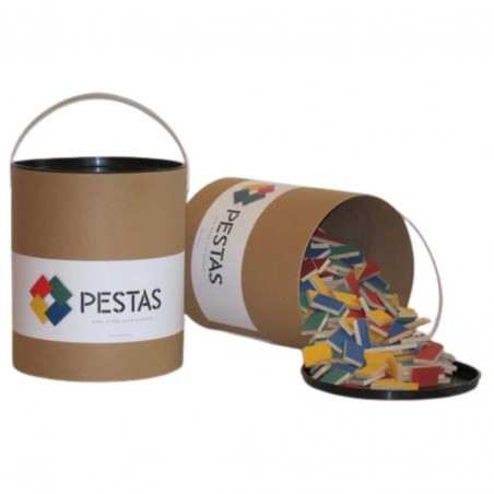 Baril de 500 Pestas (Dominos) dans les couleurs rouge, bleu, vert et jaune pour des heures de créativité! Version idéale pour les écoles, ludothèques et centres de loisirs!