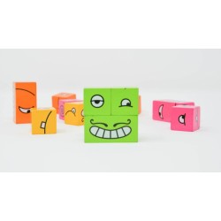 Un oeil par ci, un sourire par là. Vite ! Manipulez vos dés spéciaux et retrouvez les bons éléments pour former le visage dessiné sur la carte objectif !